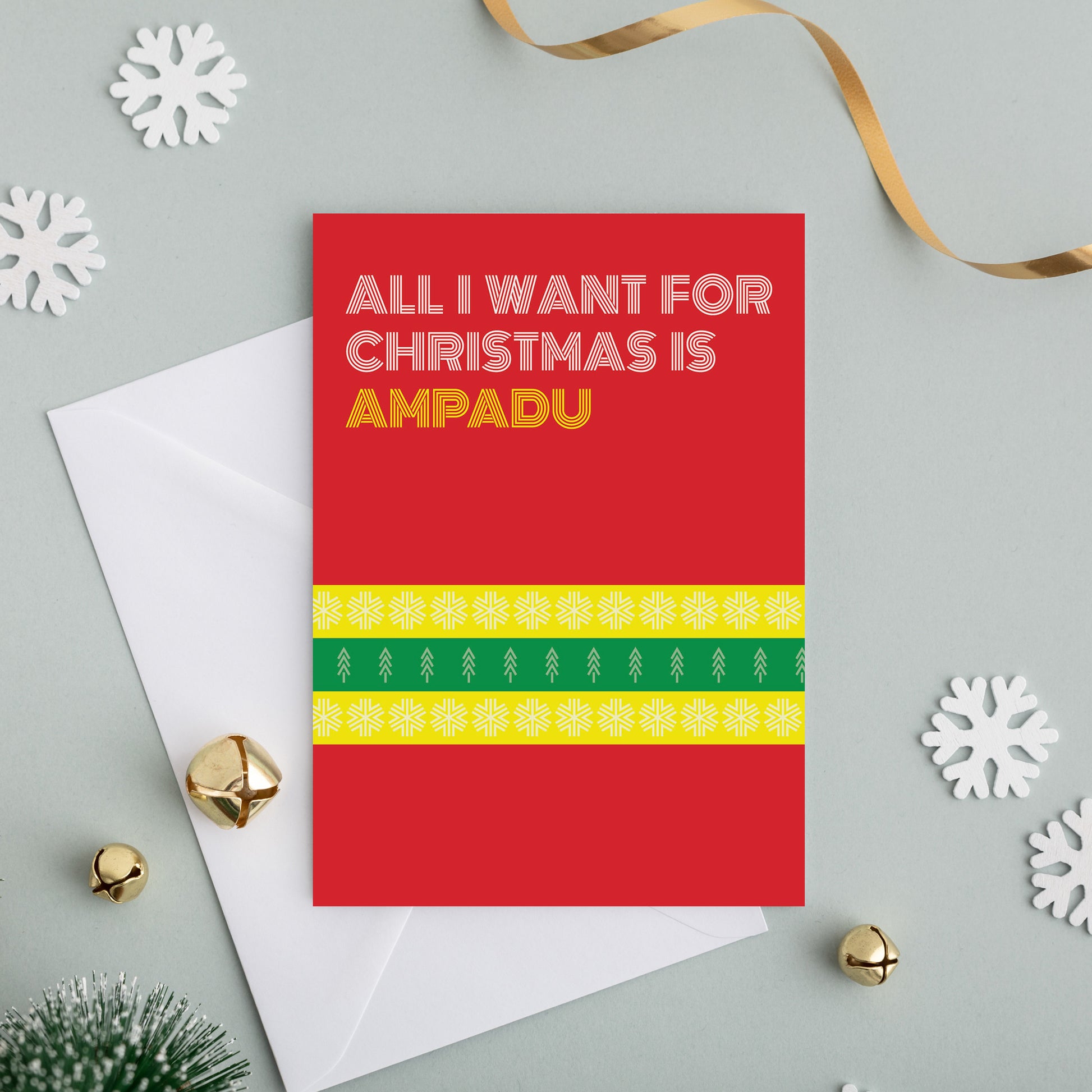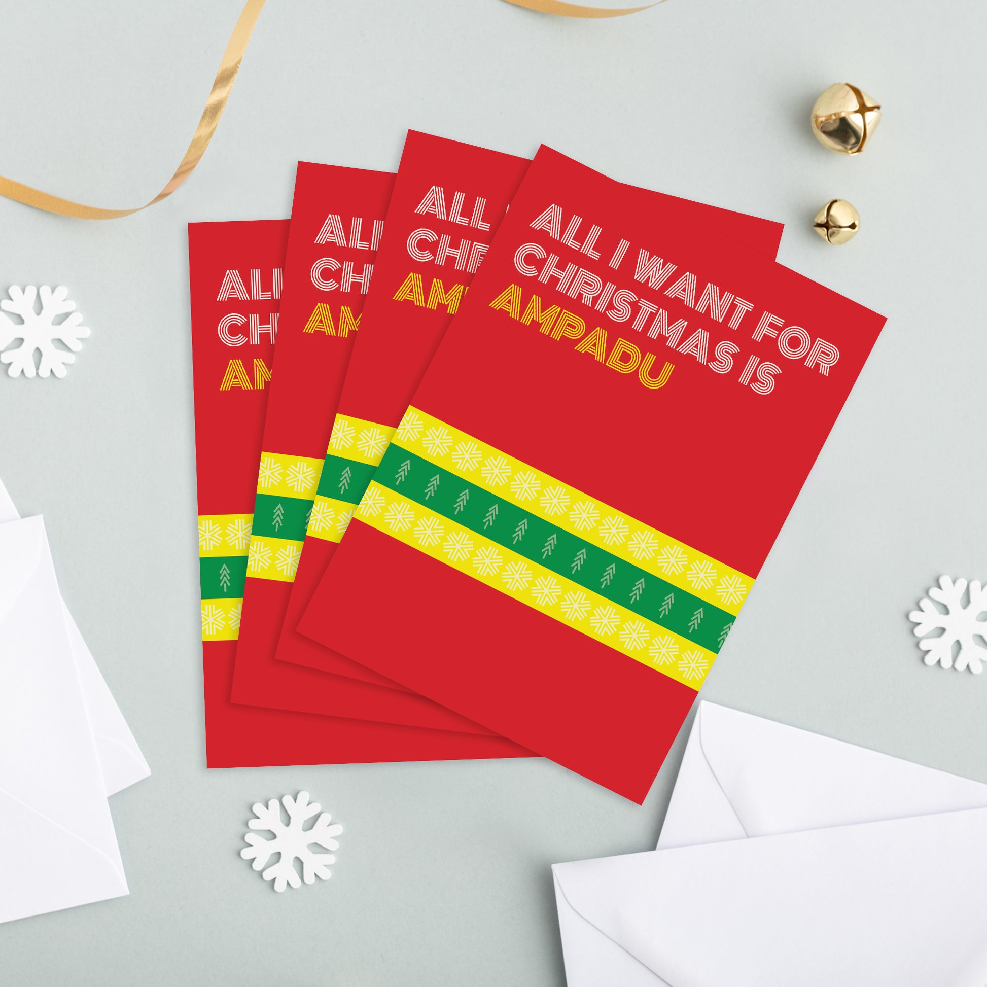 SO58 Christmas Card Set of 4 or 6 - All I want for Christmas is Ampadu