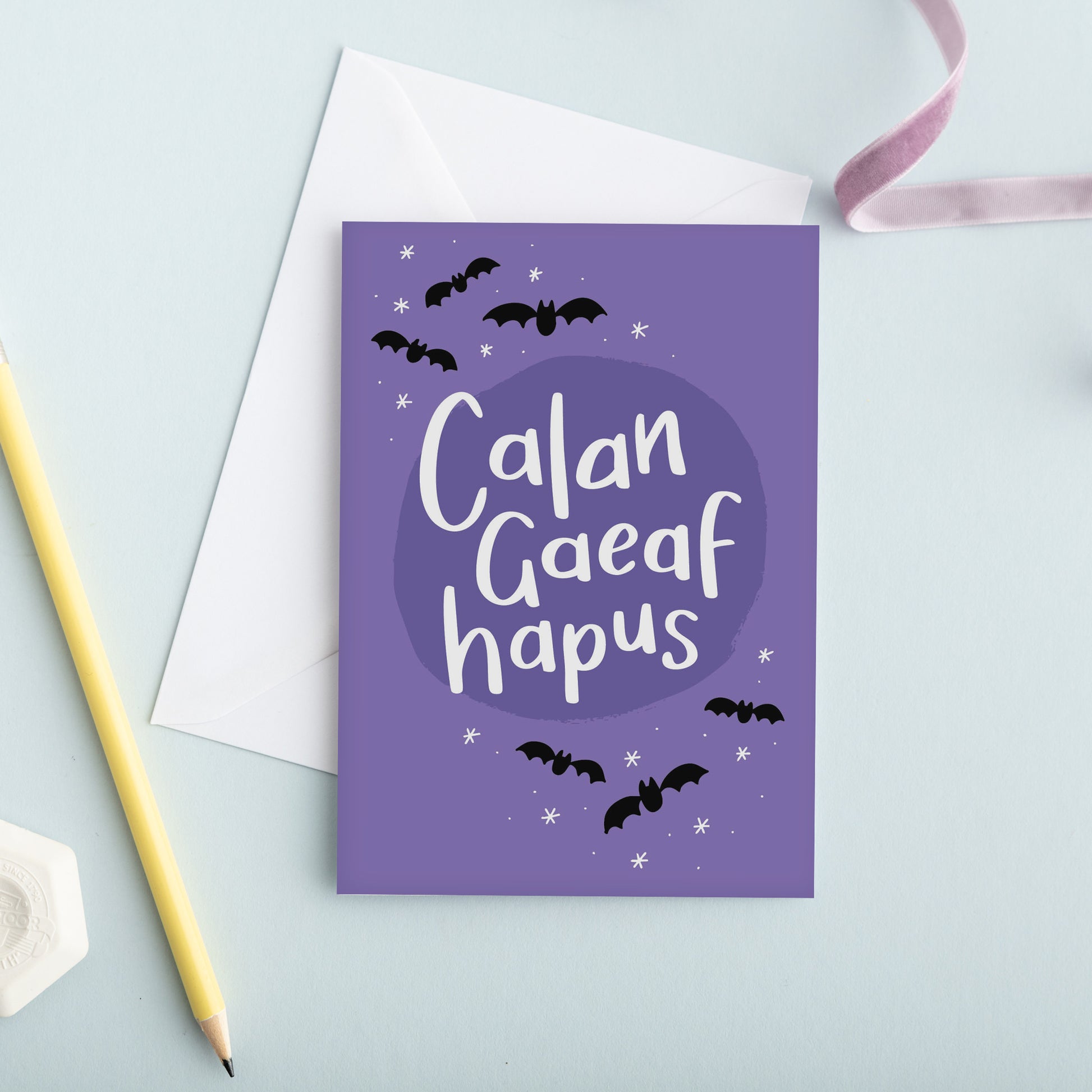 Cerdyn Cymraeg 'Calan Gaeaf Hapus' - Ystlumod